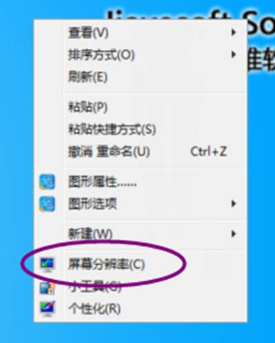 由于使用显示器大小不同,程序显示界面和表格需要做细调,才能最大限度的显示信息,鸣盛软件的显示器分辨率标准设置为1366*768,查看和修改屏幕分辩率方法如下,鼠标右键点击桌面,弹出对话框,点击屏幕分辨率,把分辨率调整为1366*768: