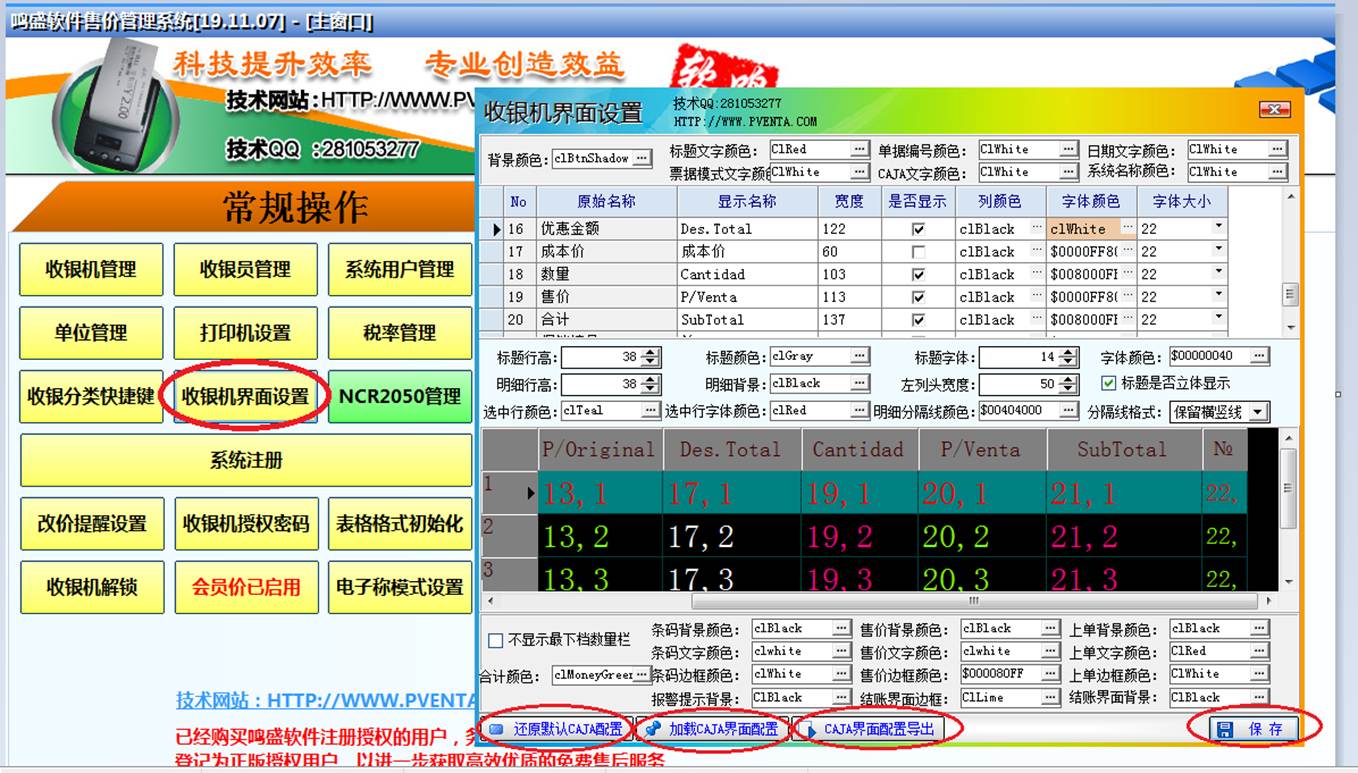 进入改价程序-系统设置-收银机界面设置,可以对收银机的显示屏幕进行设置,程序默认已经做好了常用显示。
