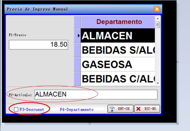 就可以在F2里输入实际商品名,而不是一味的ALMACEN,容易造成争执,并且可以根据按F3标志已经促销了,这样在结算的时候,这个商品在结算界面就不会再被重复打折了。