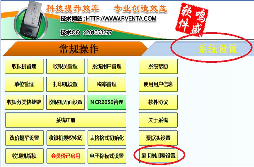 2:刷卡和手机支付的提现,往往都会被征收手续费,所以可以根据需要,刷卡和手机支付可以设定附加费的百分比,在改价程序里-系统设置-刷卡附加费设置页面: