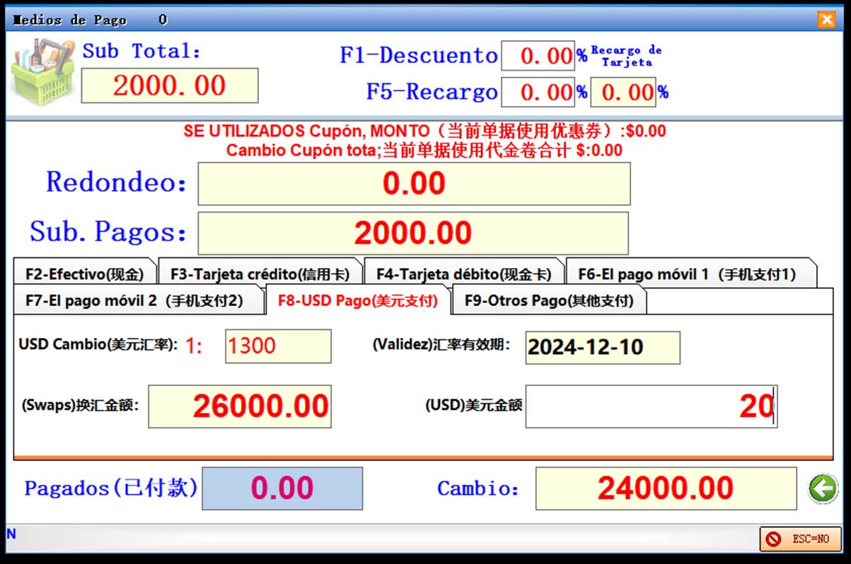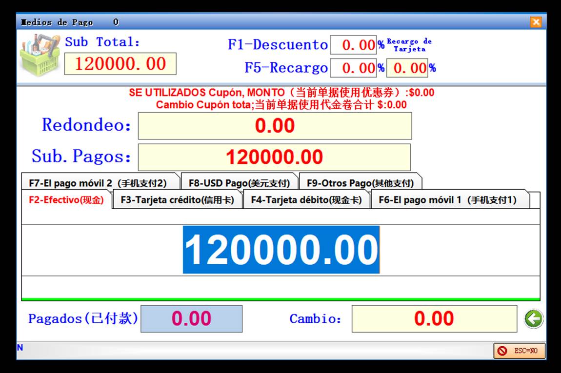 收银端(caja)的付款界面说明